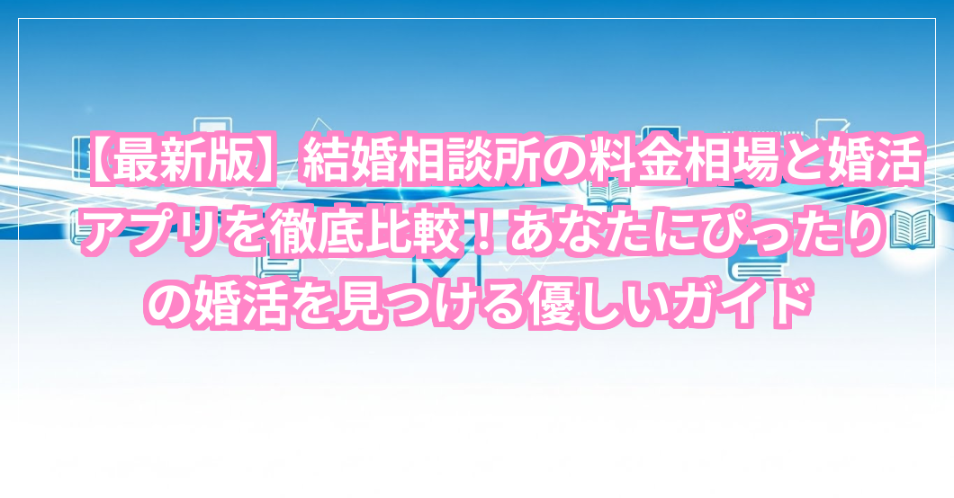 【最新版】結婚相談所の料金相場と婚活アプリを徹底比較!あなたにぴったりの婚活を見つける優しいガイド