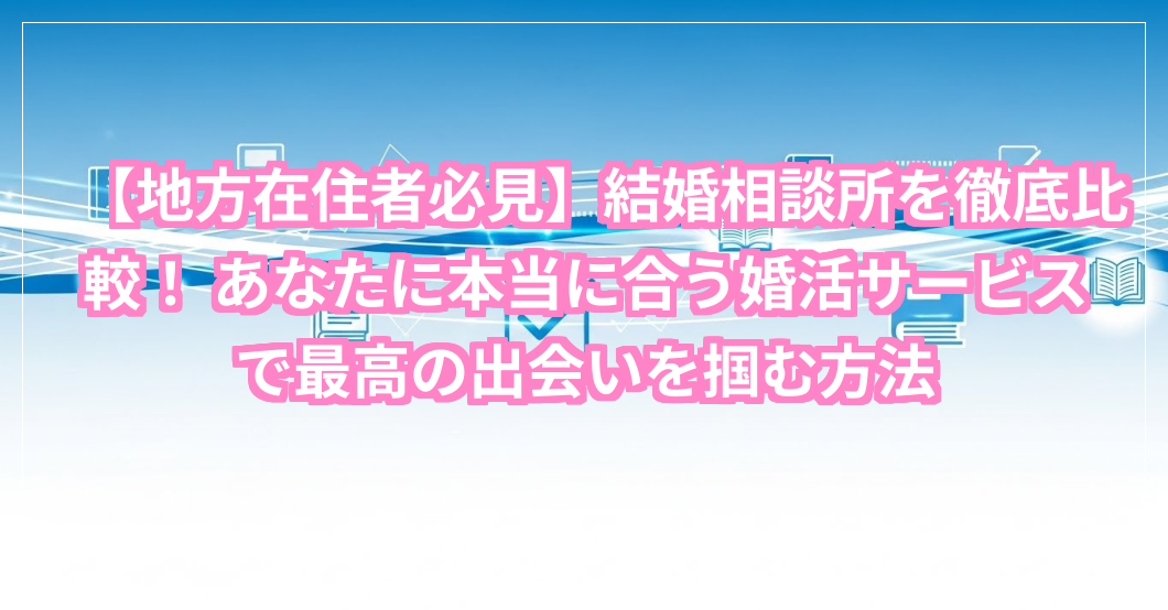 もし、ここまで読んで、結婚相談所の安心感やサポートの充実さに魅力を感じたのであれば、ぜひ前向きに検討してみてください。地方の結婚相談所は、あなたの地域に根差した情報や出会いを提供してくれる心強い味方になってくれるはずです。