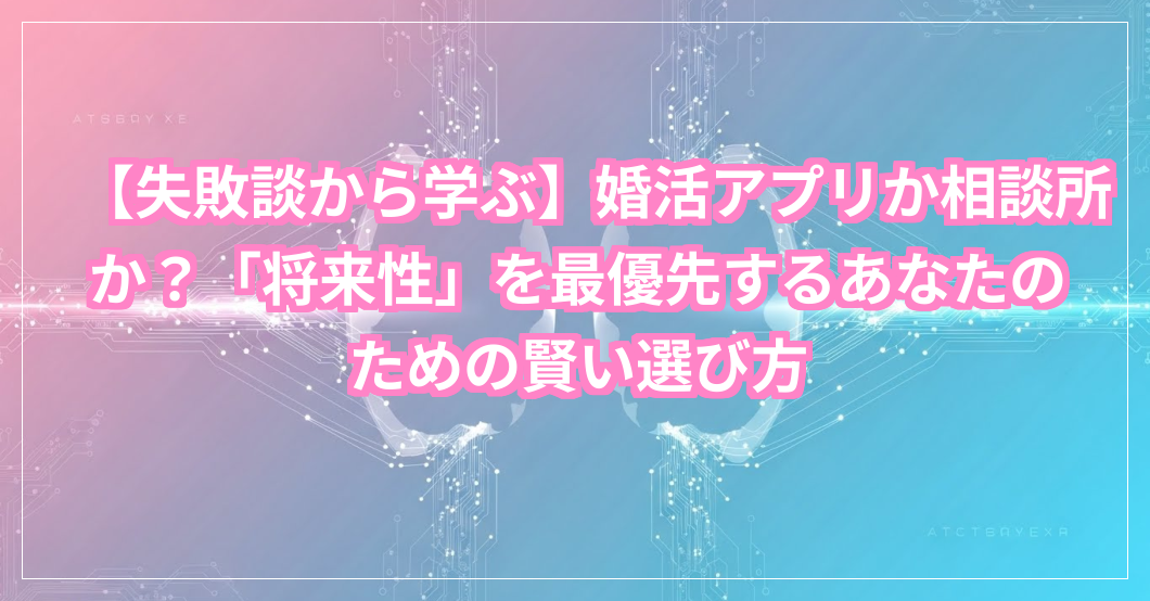 婚活を始めようと考えているけれど、どこから手をつけて良いか迷っていませんか?特に「将来性」を重視したいと思っているあなたにとって、婚活アプリと結婚相談所のどちらを選ぶべきか、これはもう、頭を悩ませる大きなテーマですよね。恋愛経験が少なくても、自分にぴったりの方法を見つけたいという気持ち、痛いほどよくわかります。この記事では、そんなあなたの不安に寄り添いながら、それぞれのメリット・デメリットを丁寧に比較し、後悔しないための賢い選び方を一緒に考えていきましょう。きっと、あなたの心に響くヒントが見つかるはずですよ。
