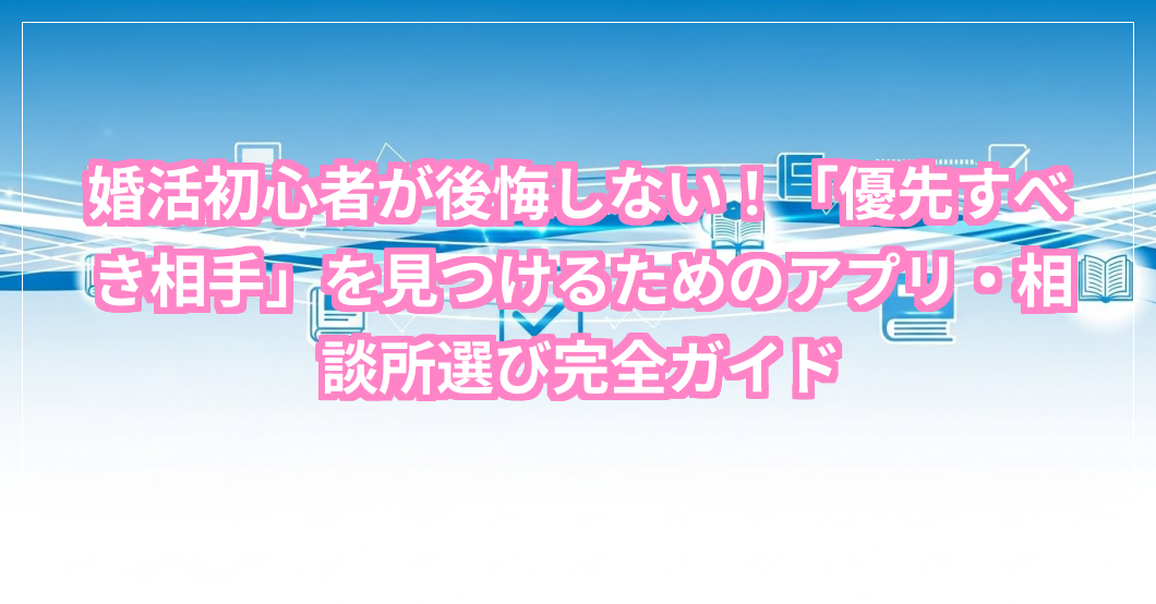 皆さん、こんにちは。婚活って、素敵な出会いを夢見る一方で、「本当に私に合う相手ってどんな人だろう?」「どうやって見つけたらいいんだろう?」なんて、不安や疑問が尽きないものですよね。特に婚活アプリや結婚相談所を検討し始めたばかりだと、たくさんの情報の中から自分に「優先すべき相手」との出会いを導いてくれる方法を選ぶのって、まるで広大な海図を前に途方に暮れるような気持ちになるかもしれません。でも、大丈夫。このページを読めば、あなたが本当に望む相手と出会うために、どんなサービスを選べばいいのか、そのヒントがきっと見つかります。恋愛経験が少ない方でも安心して婚活に踏み出せるよう、優しく丁寧に、そして時には私のちょっとした経験談も交えながら、あなたの背中をそっと押させていただきますね。