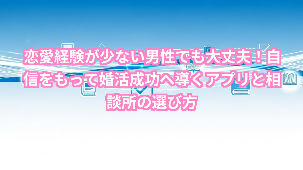 初めての婚活を前にして、「恋愛経験が少ないから、どうせ僕には無理だろうな」なんて、ひっそりと思い込んでいませんか?