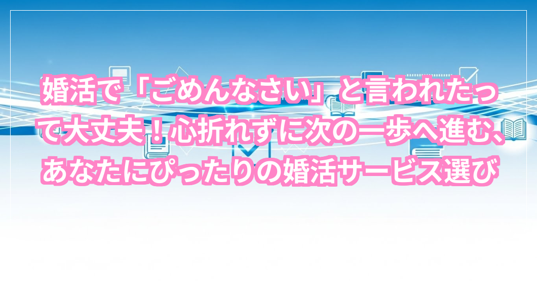 婚活で「ごめんなさい」と言われたって大丈夫!心折れずに次の一歩へ進む、あなたにぴったりの婚活サービス選び