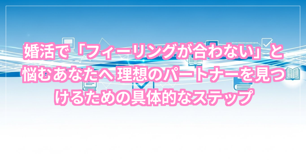 婚活を始めたけれど、「フィーリングが合わない」という壁にぶつかって、なかなか前に進めないと感じているあなたへ。恋愛経験が少ないから、どうしたらいいのか分からずに途方に暮れているかもしれませんね。この漠然とした悩みを抱えているのは、決してあなただけではありません。この記事では、そんな「フィーリングが合わない」というお悩みを具体的な視点から紐解き、あなたにぴったりの婚活方法を見つけるためのヒントを優しくお伝えします。きっと、理想のパートナーとの出会いへ向かう道筋が見えてくるはずですよ。