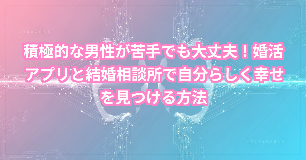 婚活は、自分自身と向き合い、新しい自分を発見する旅でもあります。そして、何よりも、あなたの隣で共に人生を歩んでくれる素敵なパートナーを見つけるための、大切な旅です。「積極的な男性が苦手」という気持ちは、あなたの繊細さや優しさの表れでもあります。その個性を大切にしながら、あなたらしく輝ける場所をぜひ見つけてほしいと心から願っています。