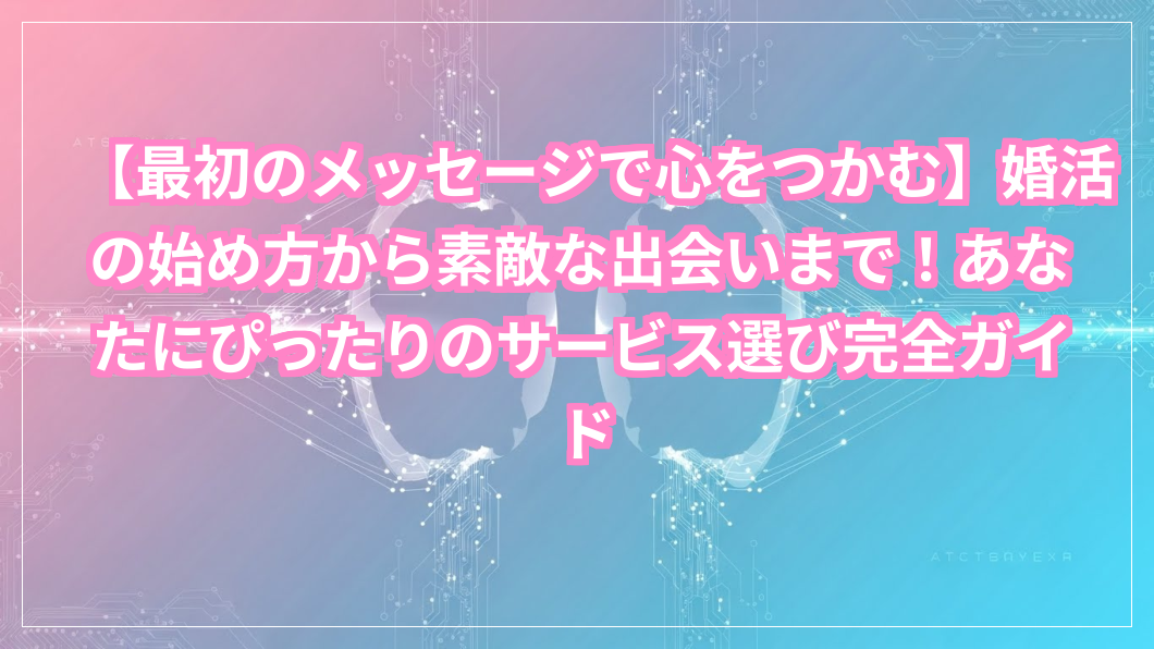 【最初のメッセージで心をつかむ】婚活の始め方から素敵な出会いまで!あなたにぴったりのサービス選び完全ガイド