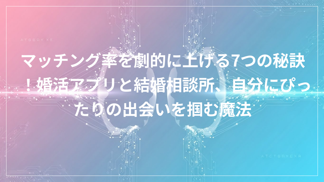「婚活のマッチング率が上がらない」「どうしたら理想の相手に出会えるの?」そうお悩みの皆さん、こんにちは!恋愛経験が少ないからと諦めていませんか?大丈夫、あなたのその不安や悩みに、私も心から共感しています。婚活って、ただやみくもに進めるだけではなかなか良い結果に繋がりにくいもの。でも、安心してください。この記事では、婚活初心者さんや恋愛経験が少ないあなたでも、自分にぴったりの婚活サービスを見つけ、マッチング率をグッと引き上げるための具体的な「コツ」を、優しく丁寧に、そしてまるで親しい友人のように、まるっとお伝えしていきますね。