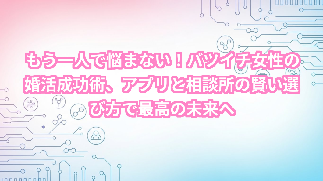婚活、特にバツイチ女性として再スタートを切ることに、ちょっぴり不安を感じていませんか?「もう遅いかな」「私なんかが幸せになれるのかな」そんな風に思ってしまう気持ち、痛いほどよく分かります。でも、どうかご安心ください。世の中には、たくさんのバツイチ女性が素敵なパートナーと出会い、第二の人生を謳歌しているんです。このガイドを読めば、あなたにぴったりの婚活方法を見つけ、理想の未来へと一歩踏み出すヒントが見つかるはずです。