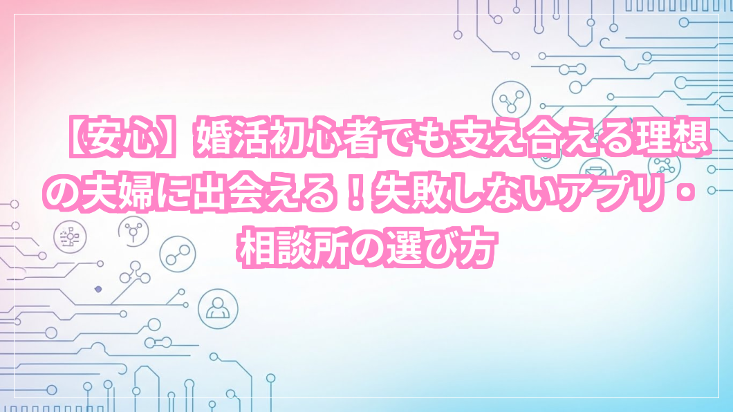 婚活を始めたいけれど、どうすれば支え合える理想の夫婦に出会えるのか、そんな風に悩んでいませんか?恋愛経験が少ないからと、自分に合う婚活方法を見つけるのは少し不安ですよね。でも大丈夫、この記事を読めば、あなたにぴったりの婚活サービスがきっと見つかります。さあ、一緒に理想の未来への扉を開きましょう。