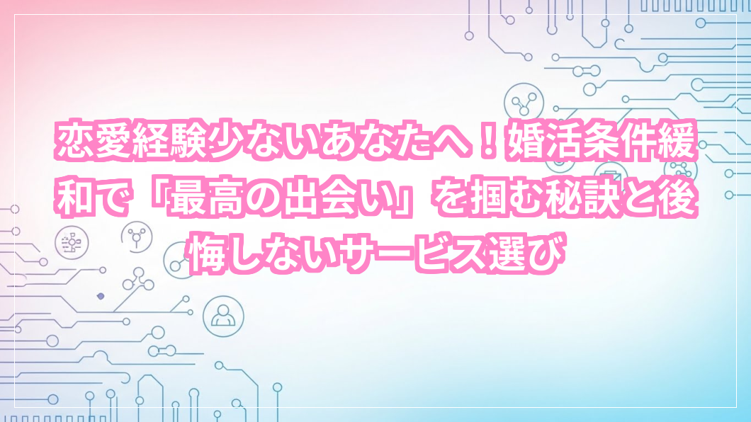 婚活を始めたいけれど、恋愛経験が少ないからと一歩踏み出せずにいませんか。もしかしたら、理想の条件が厳しすぎて、なかなかうまくいかないと感じているのかもしれませんね。でも、ご安心ください。実は、婚活条件を少し緩和するだけで、驚くほど成功への道が開けることが多々あるんですよ。この記事では、婚活アプリと結婚相談所の違いを徹底比較し、あなたにぴったりのサービスを見つけるお手伝いをします。一緒に、最高の出会いを見つけましょうね。